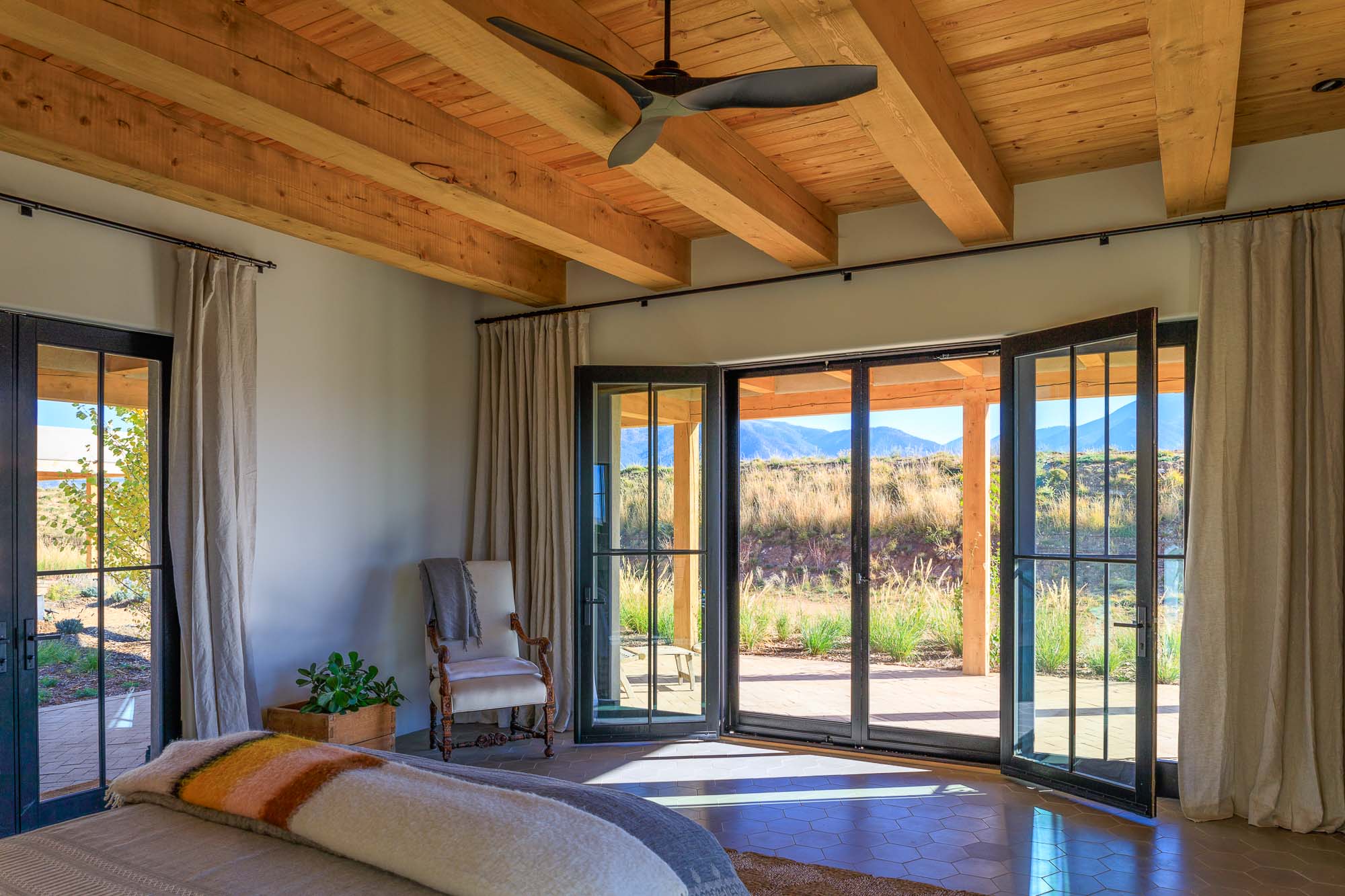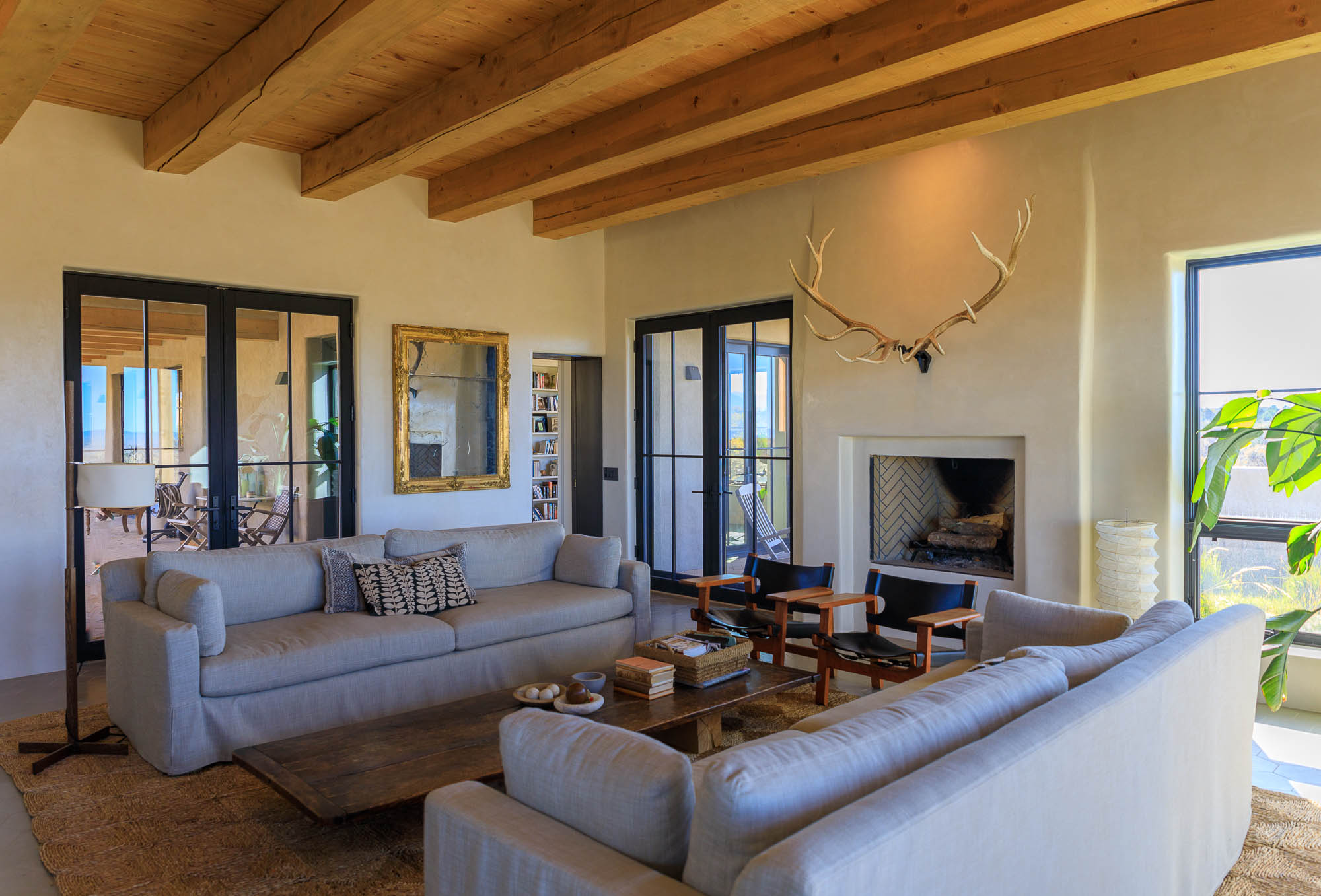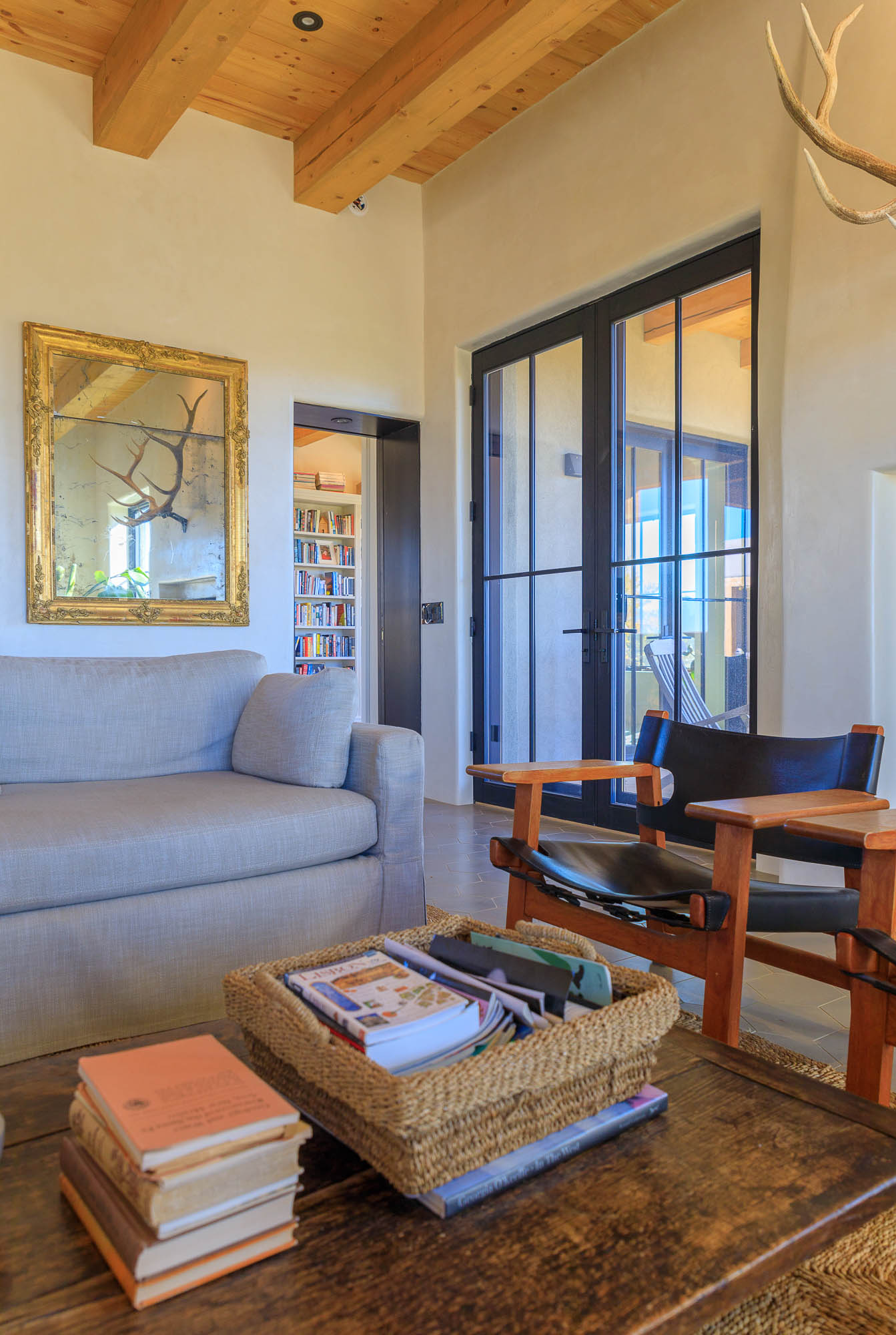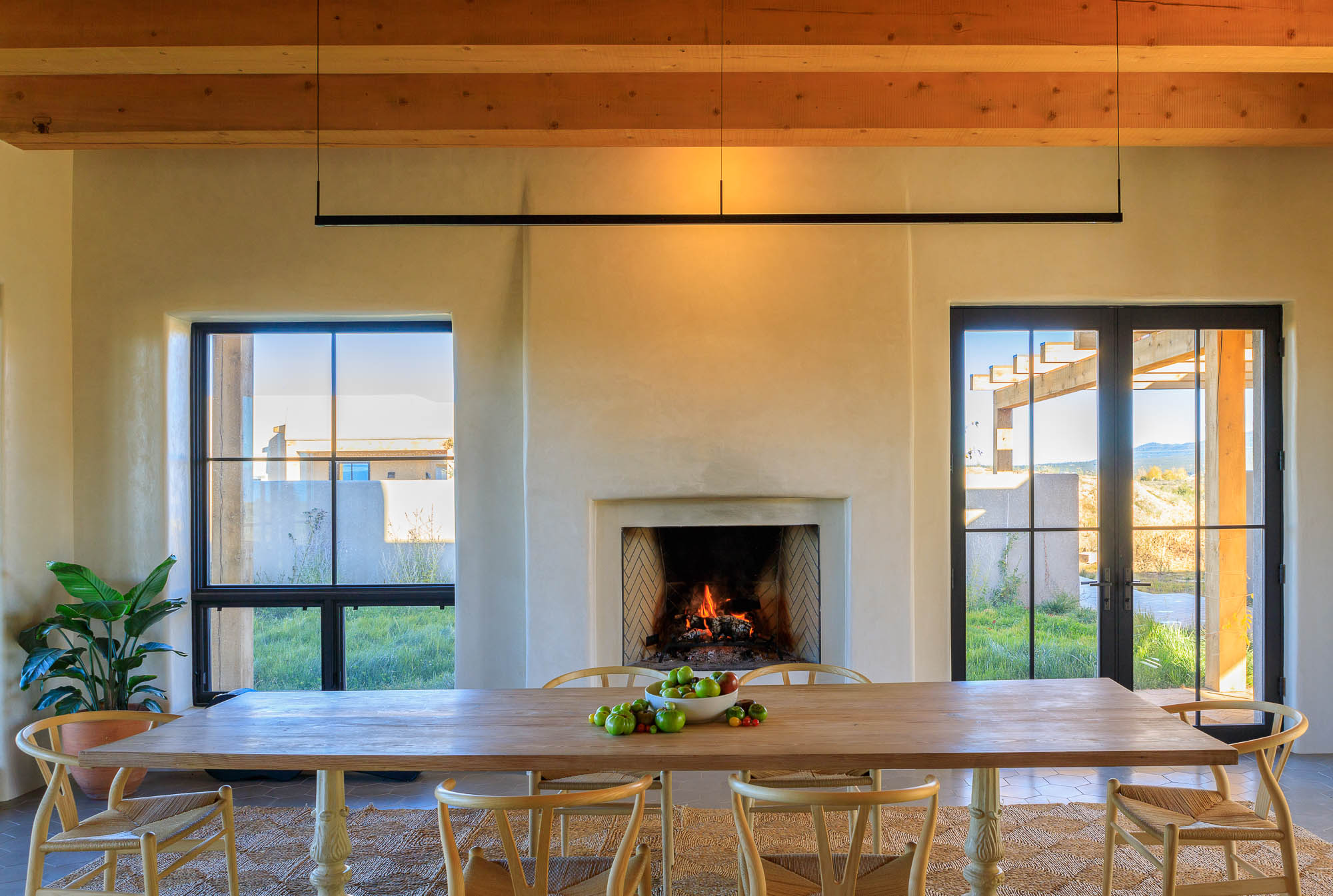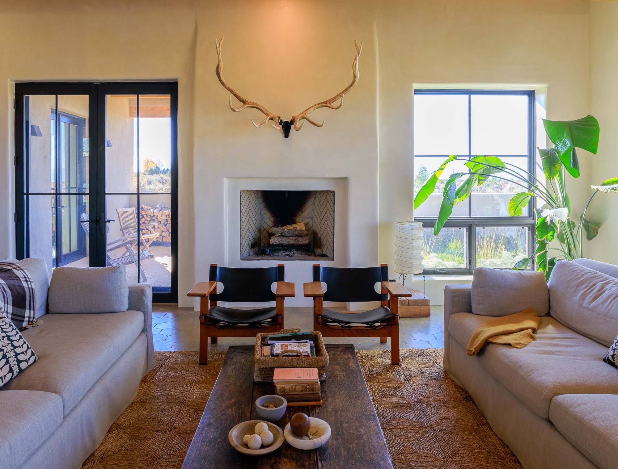 Nestled in the sage at the base of the Sangre De Cristos, The Courtyard is a sprawling home designed around a lavendar and aspen tree garden.