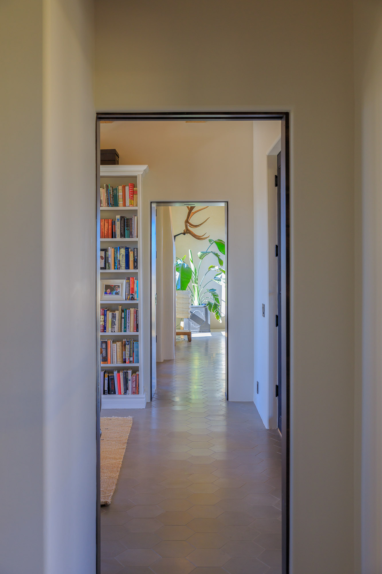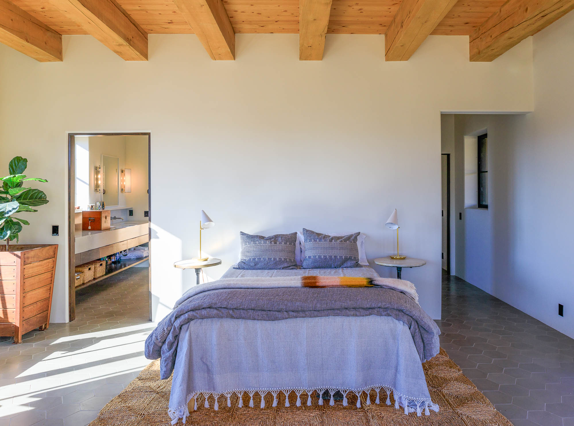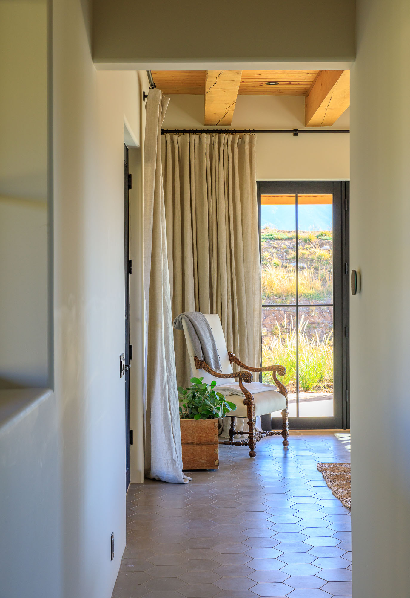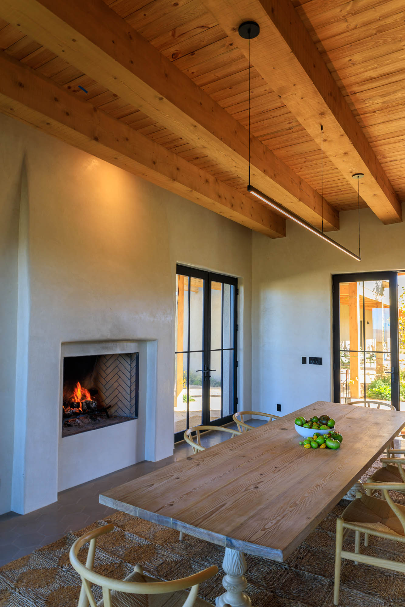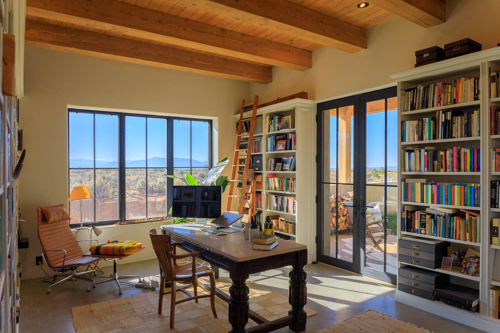 Nestled in the sage at the base of the Sangre De Cristos, The Courtyard is a sprawling home designed around a lavendar and aspen tree garden.